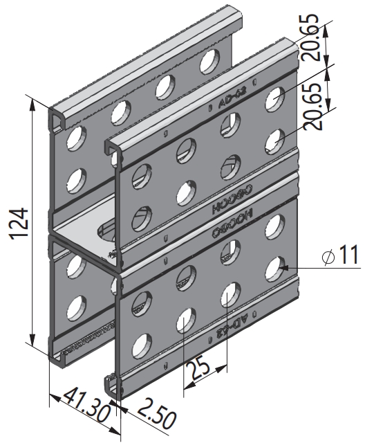Products > 支撐系統 > 模塊支撐系統 > 雙拼槽鋼-62U型雙拼側孔槽鋼