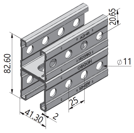 Products > 支撐系統 > 模塊支撐系統 > 雙拼槽鋼-41U型雙拼側孔槽鋼