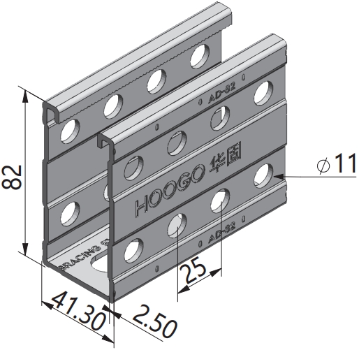 Products > 支撐系統 > 模塊支撐系統 > 單面槽鋼-82U型側孔槽鋼
